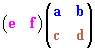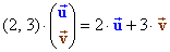 Al multiplicar el vector (2, 3) por una matriz cuadrada de orden 2 se obtiene el vector fila que resulta al sumar el doble del 1º vector fila de la matriz con el triple del 2º vector fila de la misma: