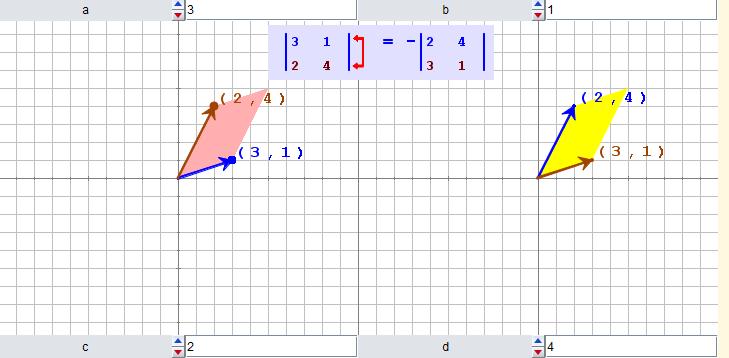 Al permutar dos filas de un determinante, este cambia de signo pero no varía su valor absoluto, es decir, el determinante es una forma hemisimétrica. |