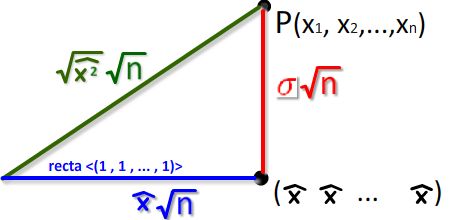 Por tanto , por el reciproco del teorema de Pitágoras al tener en cuenta el triángulo anterior, se concluye que la distancia de P a la recta <(1, 1, ... , 1)> es sigma por raíz de n.