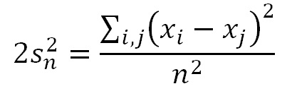 sn2 mide las diferencias entre cada par de valores, da el valor medio de sus cuadrados (en realidad es la mitad de ese valor medio) considerando también las diferencias entre datos iguales, por tanto salen n2 sumandos.