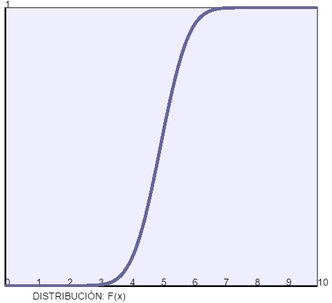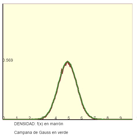Estudiar la distribución Normal calculando medias de 20 exámenes en una clase de 1000 alumnos, se generan notas aleatorias y vemos el gráfico de la función distribución. Su densidad es la campana de Gauss.