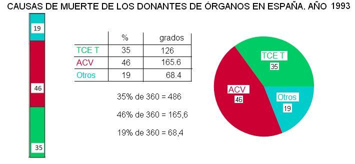 a) Representa en un diagrama de sectores las causas de muerte de los donantes de