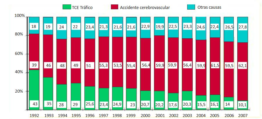 cerebro debida a la rotura o al bloqueo de un vaso sanguíneo) entre 1992 y 2007.