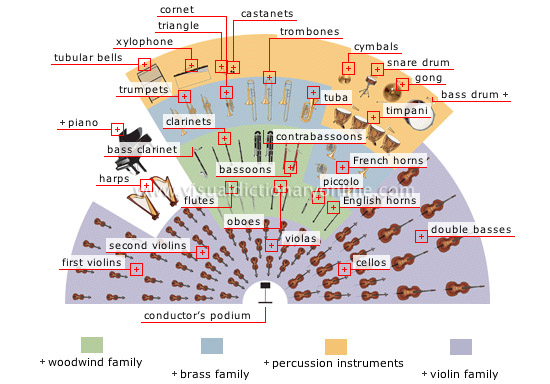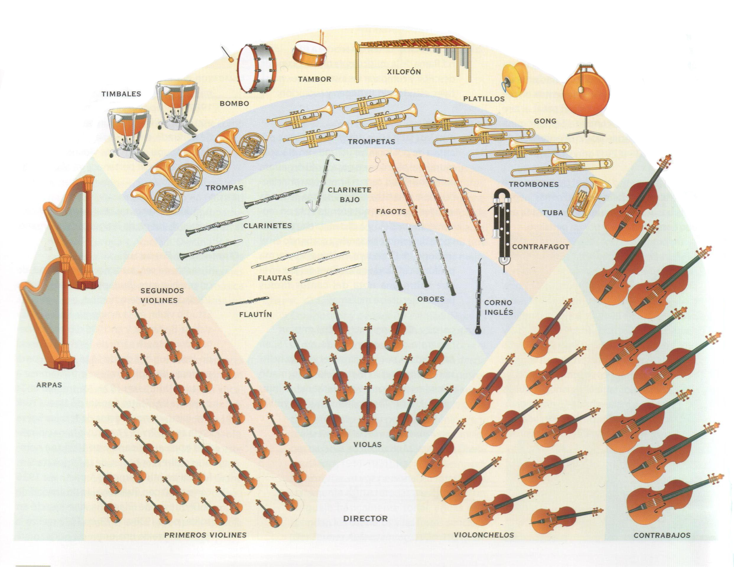 Observa en el dibujo los instrumentos que forman una orquesta sinfónica