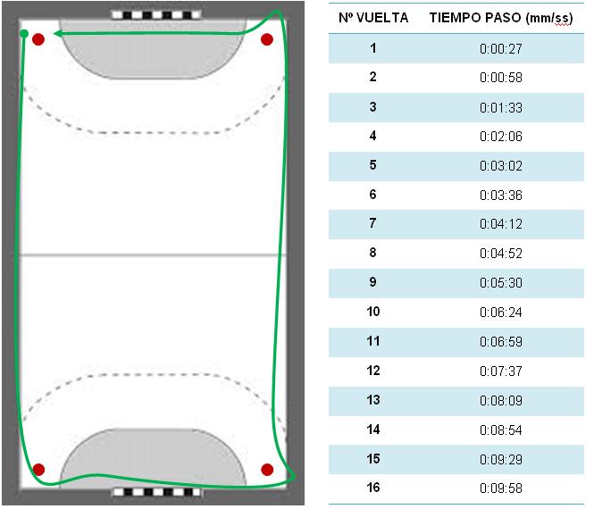 vueltas y el tiempo de paso de cada una de ellas. Después cambiarán los roles de
