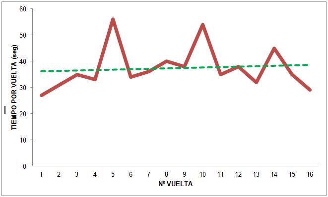 una gráfica para reflejar la evolución de su ritmo por vuelta, resultando lo