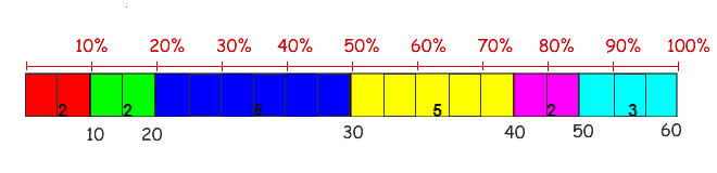 los alumnos, así el percentil 40 se alcanza en la barra azul, es decir entre 20 y